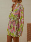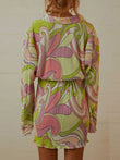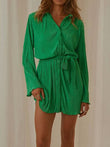 Tied Button Up Long Sleeve Dress