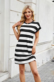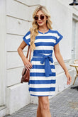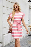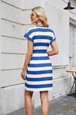 Tied Contrast Striped Short Sleeve Mini Tee Dress