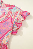 Tribal Paisley Print Ruffled Sleeve Notch Neck Midi Dress
