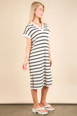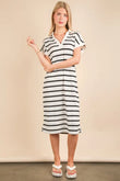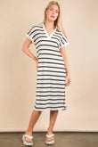 The Oversized Collared Striped Knit Midi Dress is a fashionable and comfortable choice for your wardrobe. With a oversized fit and collared neckline, this dress offers a chic and relaxed look. The striped knit design adds a stylish touch, while the midi length provides a versatile and on-trend silhouette. Perfect for both casual and dressier occasions, this dress can be styled with sneakers for a casual look or heels for a more polished ensemble.